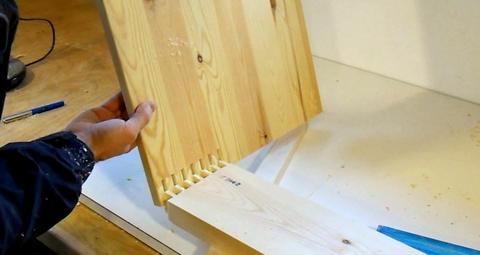 I only joined the front bottom corners this way. I joined the other panels together with dowel joints