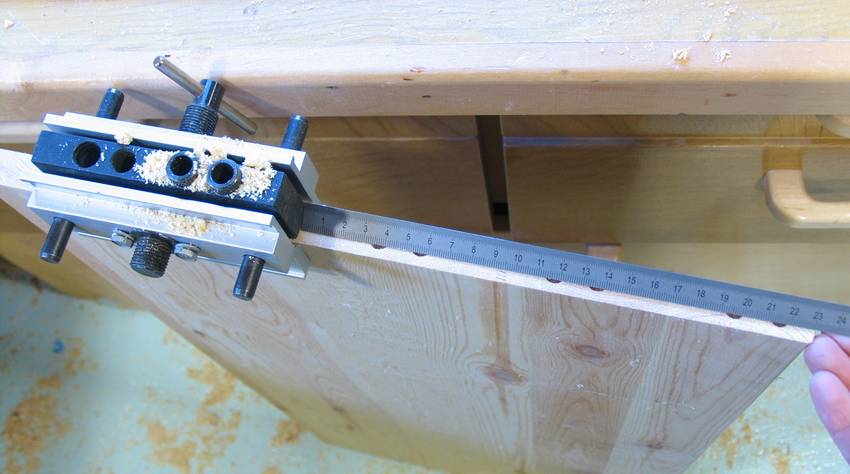 I also used the jig to drill the holes in the flat side of the panel. I clamped it over