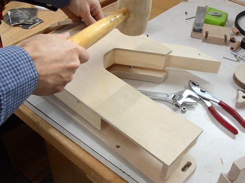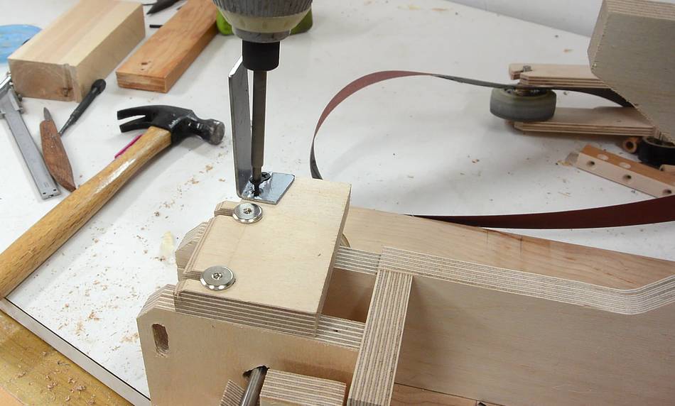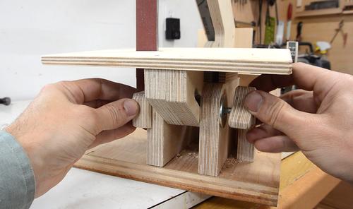 The mount for the platen is made of 18 mm Baltic birch plywood. Two