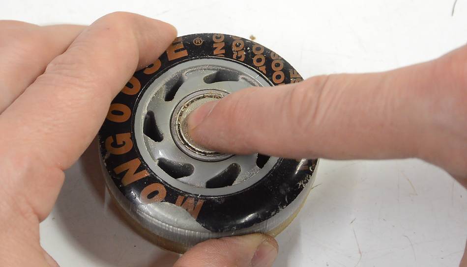 A wing nut and washer on the threaded rod push the back of the upper wheel