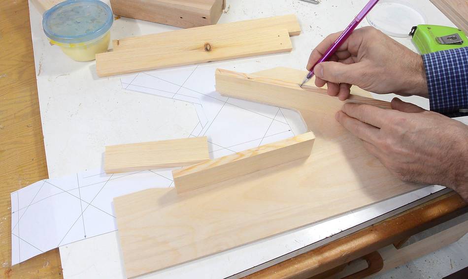 I just marked these off my piece of wood and then cut them on the bandsaw. I also have templates for all these pieces in the plans, but I'd recommend just marking them off like this as you go along.