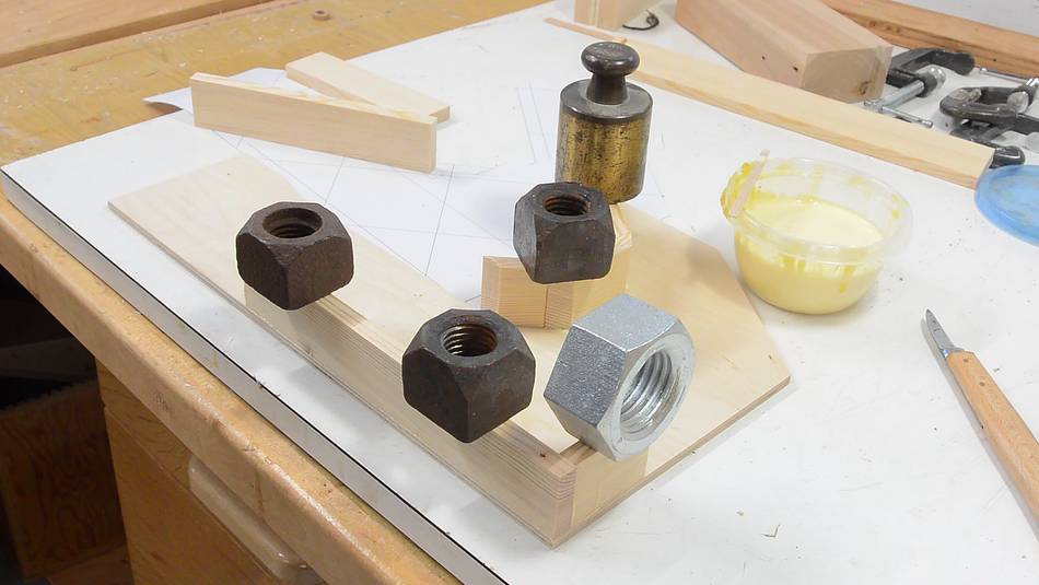 A piece of wood on the end of the carriage bolt keeps the bolt's head from