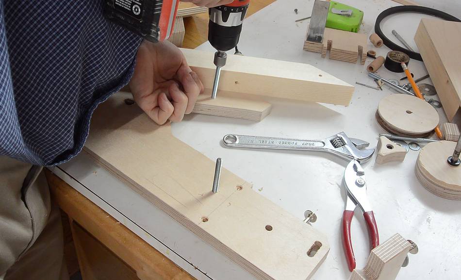 If you follow the plans, you will already have drilled these holes earlier. The holes are 1/32" smaller than the 1/4" threaded rod. In metric, drill 5.5 mm holes and use M6 threaded rods.