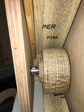 While making one of the first sanding tests, before creating the enclosure, I had clamped the end of the vacuum hose under the bottom wheel to collect as much dust as possible. I was surprised to see that almost all of the dust was being sucked into the hose. So I tried putting the dust collection hole in the front. With the enclosure in place it appears that all the dust is sucked out with the flow of air moving through the sander from back to front. I did leave a small gap at the back when creating the enclosure to promote air to flow through the interior towards the vacuum hose. The dust collection system is not super powerful - it consists of 1.5" hose about 8 to 9 feet long that is connected to a "Dust Deputy" that is connected to a household vacuum cleaner (about 1200 watts / 220 volts). The hose is flexible enough so that it can be routed out of the way so as not to interfere with standing in front of the sander.