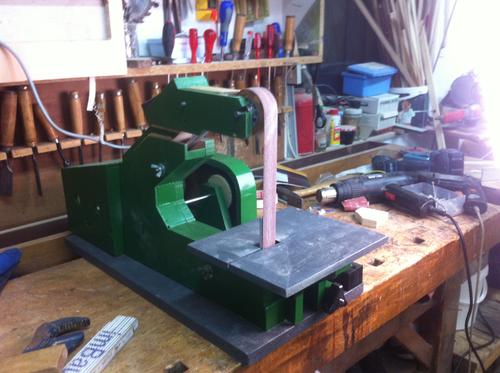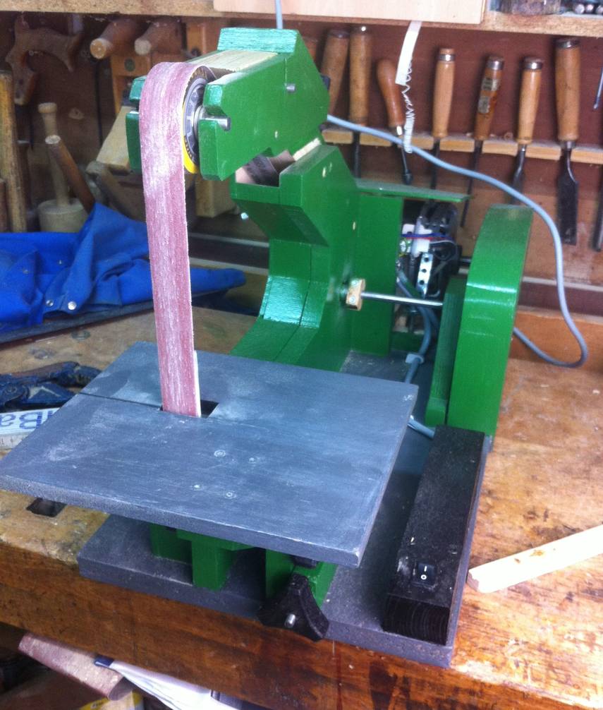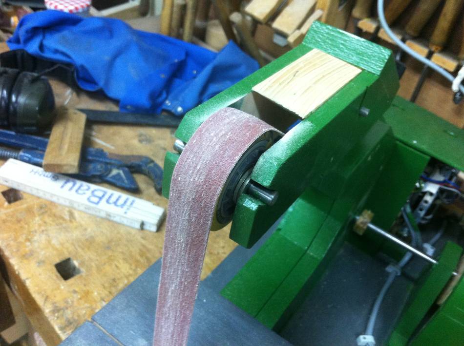 Philipp Kowalsky writes:Hey Matthias, my name is Philipp and I am a 18 year old student from Germany. Some days ago I bought youre plans for the Belt sander and I started to work on the machine. I bought an used motor from a Washing machine and this solution with only 240 watt turned out pretty good. I just wonna thank you for your work on the plans and the brilliant concept in general. I am following you on YouTube and your website for a while and I am looking forward to finish some more projects with help of your detailed plans. At the moment it has no dust collection but it works pretty fine.