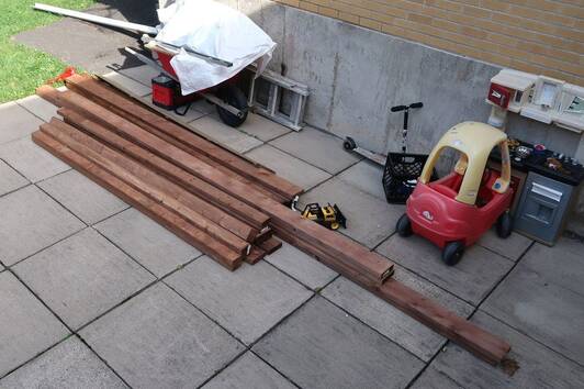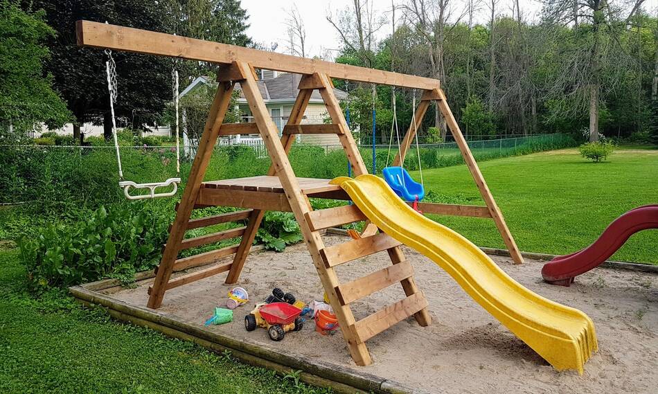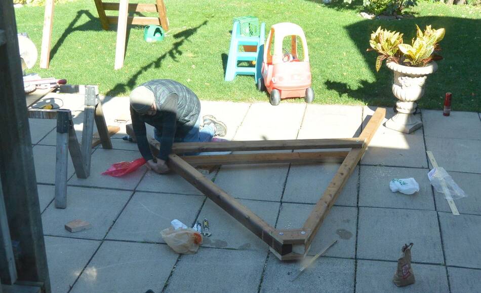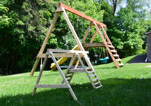 I put it aside. But having seen neighbour's play set kits, from places such as Home Depot or Costco, I realized the swing set we had is actually quite good. It's less elaborate than these kits, but MUCH sturdier. And these kits aren't cheap, and they are a lot of work to put together. So it makes sense to just buy raw lumber and put something together from scratch.