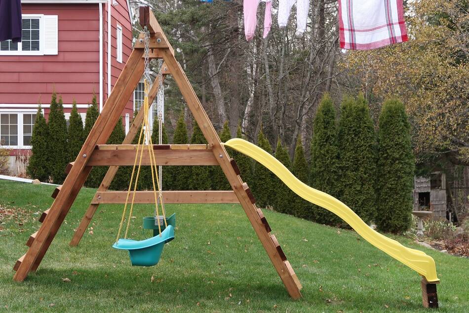 And here is a swing set, built from the plans, by Chris. Chris also opted for
