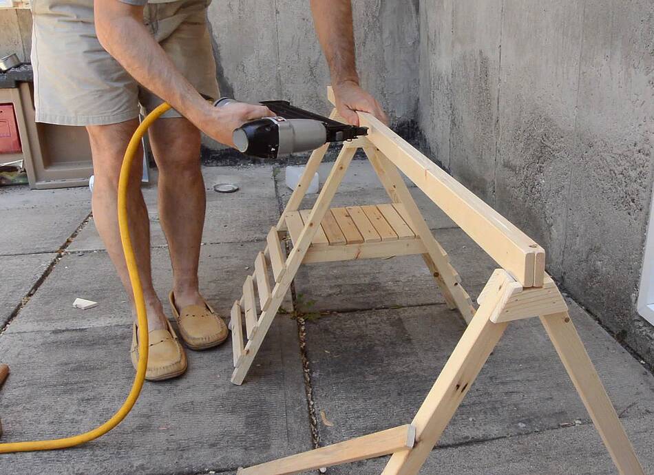 customized for a slope, with the down-slope legs about 20 cm longer, cut from 10' long