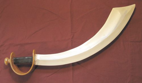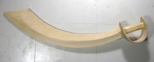 Making a pirate sword (or Alladin sword)I first built this wooden pirate sword in 2009, before I made build videos of my projects. But swords and such seems to be a very popular topic these days, so I built it again just to make video of it. The article below is from my original build from 2009. The method of making it is was mostly the same this time, though I was much more confident with the curved cove cutting. I also tilted the blade for the cove cuts, which made it work better. A YouTube commenter said it was more of an "Alladin" sword. Looking that up, it does indeed look a lot like one of those!