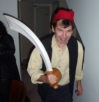 But it had me thinking of Halloween and woodworking. I had previously made a straight sword out of wood for an amateur play, and everybody thought that was just so cool. So for an extra challenge, I thought I'd try to make a curved pirate sword. Of course, you can buy this sort of thing cheaply, but these things are small, flat and made of plastic. So to distinguish mine from these, I made mine much longer and with a nice profile.