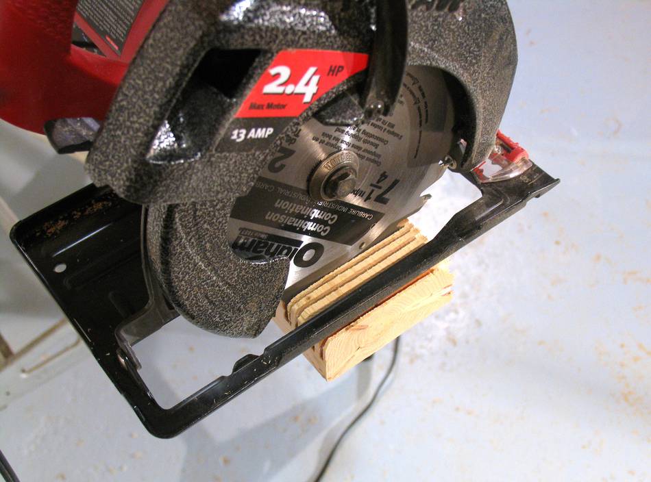 set the saw to less than its full depth of cut, or the saw's motor will hit the square.