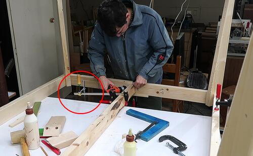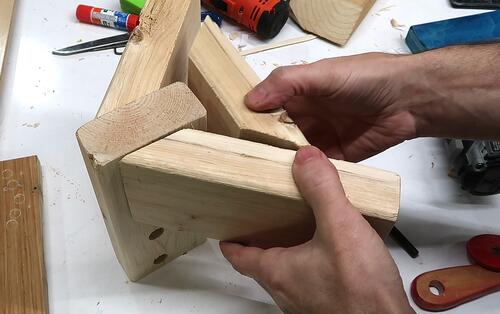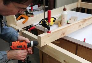 Screwing on the gussets. I also used liberal amounts of glue for these.