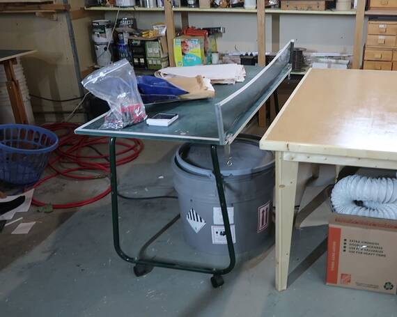 half of the ping pong table, which was a bit unstable without the other half