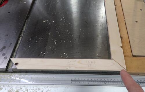 to exactly 45°. I checked the setting by cutting the ends off two scraps