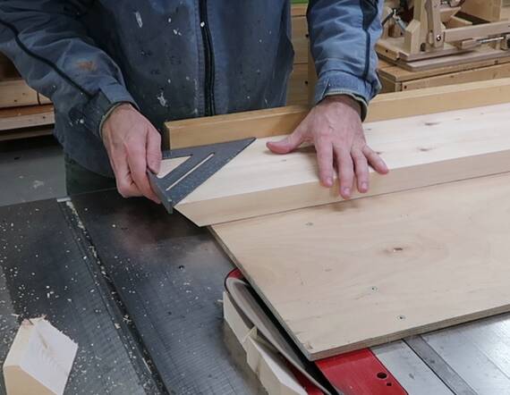 After making the cut, I check it with a square to make sure I haven't screwed up.