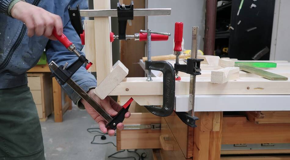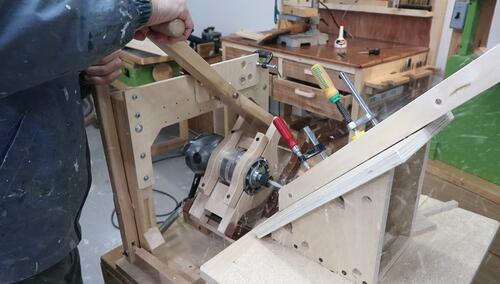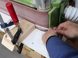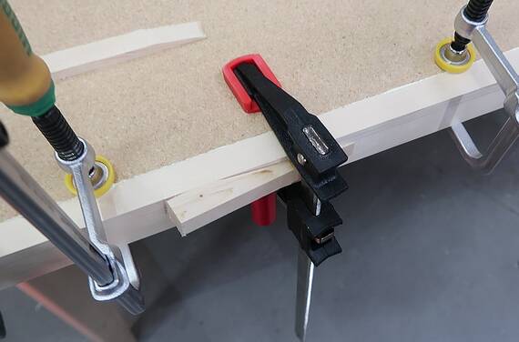 Here I'm using a push stick to hammer a wedge between a bar clamp