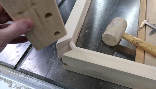 The legs will join the apron rails like this, with dowels going through