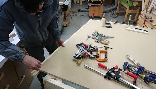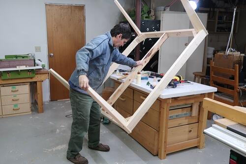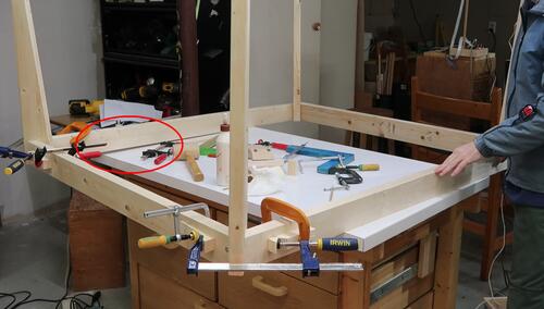 the workbench to put the remaining legs on. This orientation wasn't as ideal