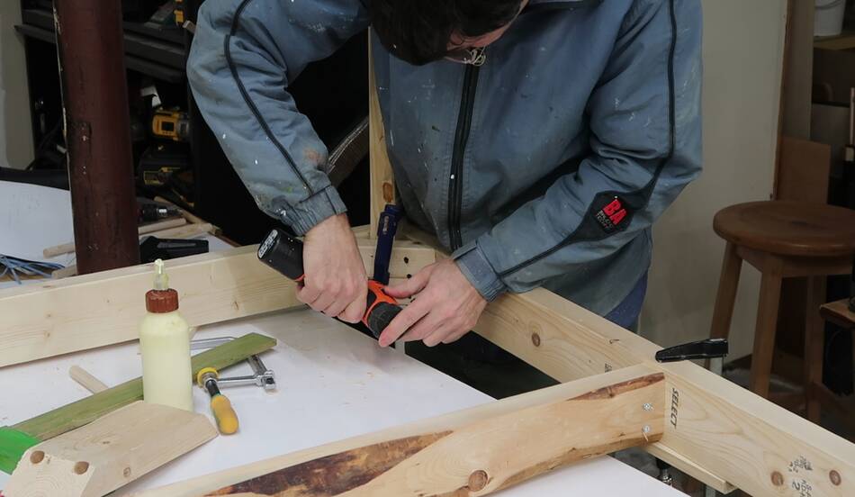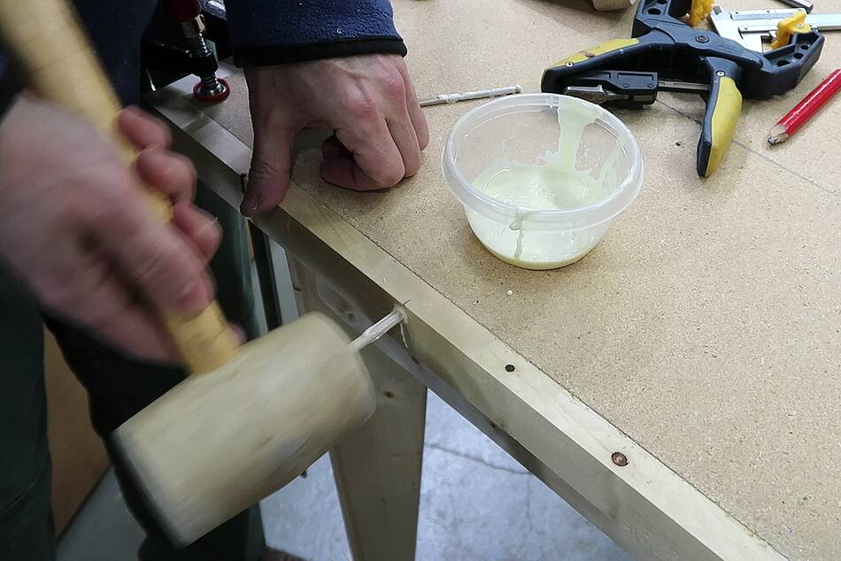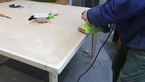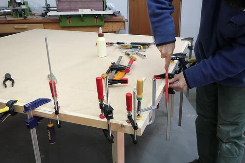 After the first two joints were done, I had to put the table upside down on