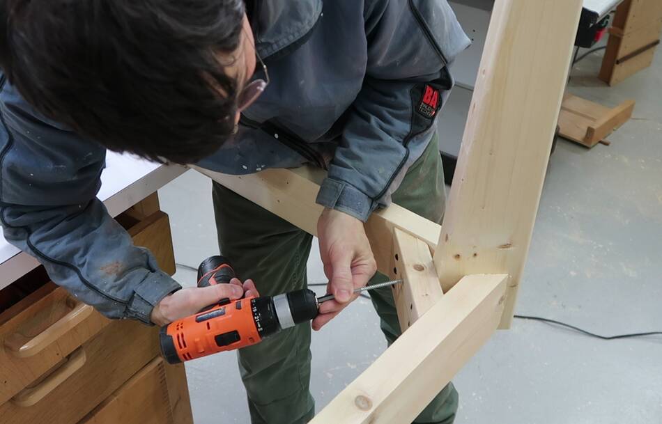 Then adding some long screws through the gussets into the table legs. These screws
