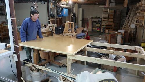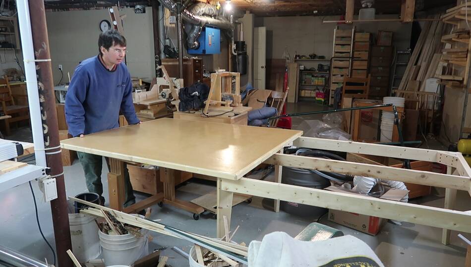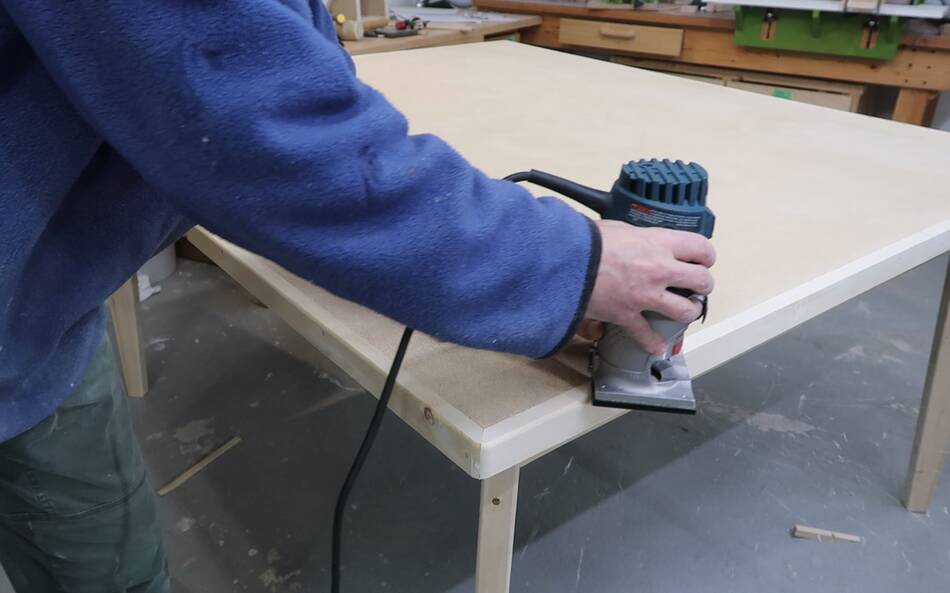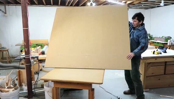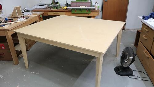 Particle board on the table. Now I need to make some trim.