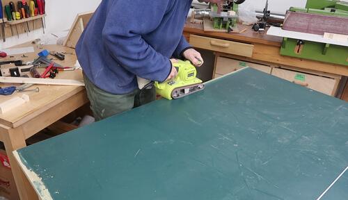 I used a belt sander to sand the paint off near the edges so I could glue the