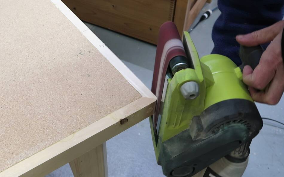 While I was at it, I also sanded the edges and sanded the trim and top to make sure