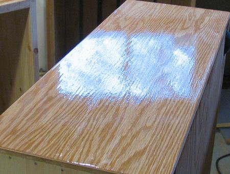 At right, final coat on a drawer front for my under bed drawers, with water based varnish. Water based varnish doesn't give this luxury of time, but the oil based varnish takes a day to dry between coats, and it's smelly. The water based varnish is much more practical to use in the winter.