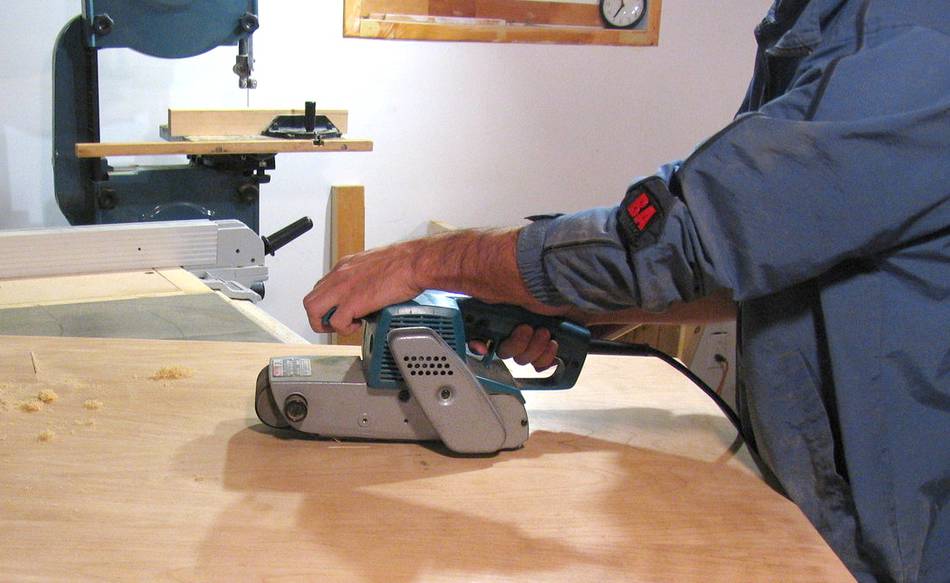 Like when refinishing floors, its important to keep the belt sander moving across the surface, so it doesn't dig in at any particular spot. Though using this belt sander trick cuts down on this quite a bit.
