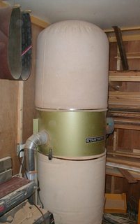 So when I found this large dust extraction blower system at a University of Waterloo surplus sale, I bought it. The next challenge was where to put it and how to hook it up. I ended up putting it into the corner of my workshop. I didn't know where to get the proper hoses for this sort of thing, so I used 4" sheet metal duct pipes, which I ran from the inlet of the dust extractor to near my table saw.