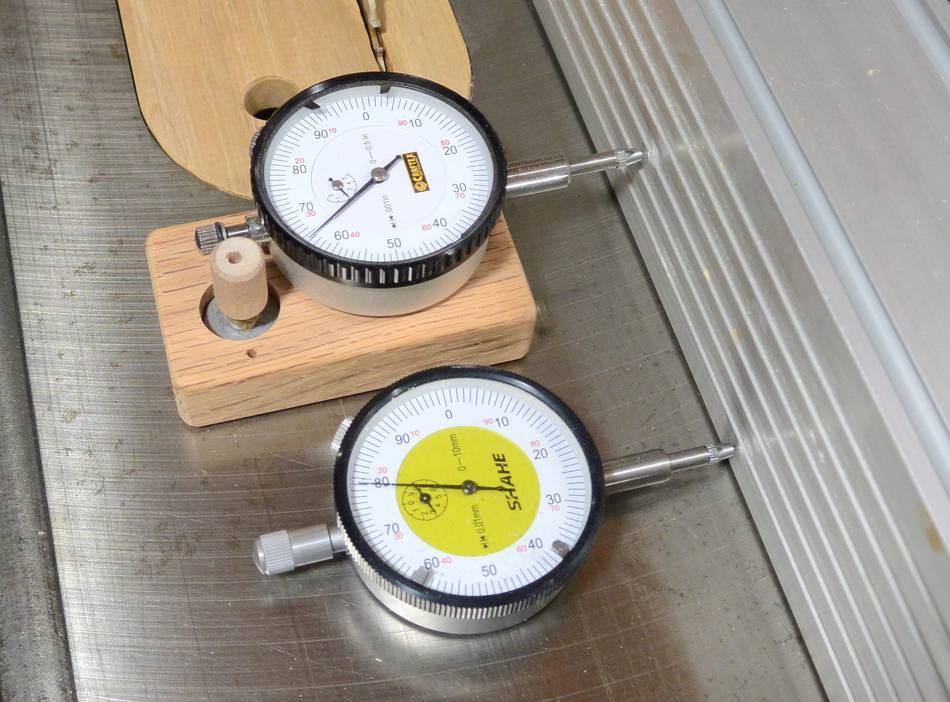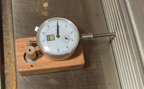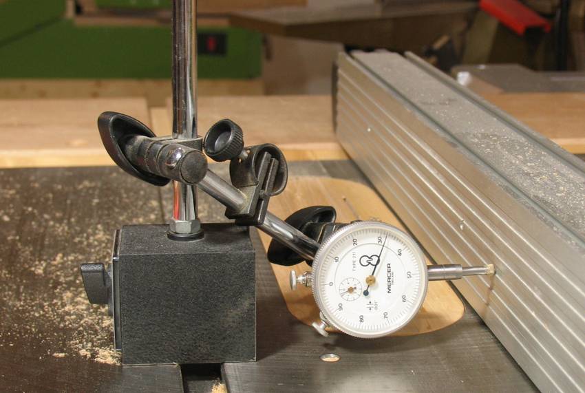 A dial indicator is useful for checking how much the fence has moved. I'm doing this in thousandths of an inch because my dial indicator uses that. It's hard to get a metric one in Canada, and I don't like the digital dial indicators.