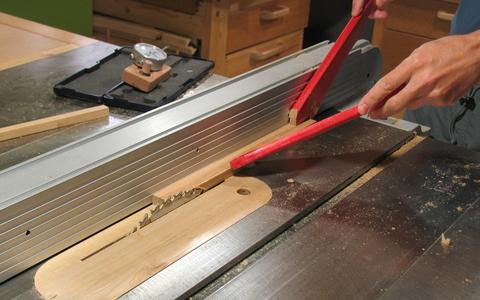 The tricky part is to make sure the ripping is done consistently. When only one side of the blade is cutting the board, that actually deflects the blade to the side a bit. I also made the previous cut with only the side of the blade cutting to be consistent.