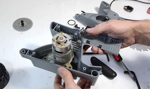 a relatively small motor and gearbox. Not a very powerful saw,