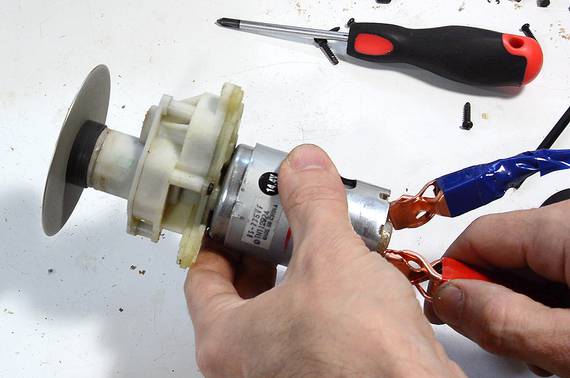 and attached the motor to the board with a hose clamp.