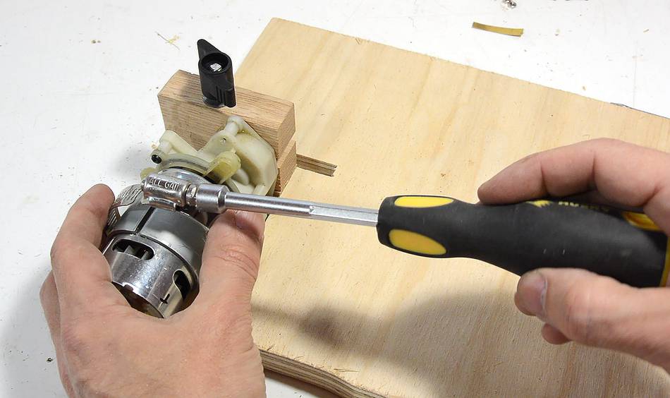 I made a block of wood to clamp around the cylindrical part near the arbour