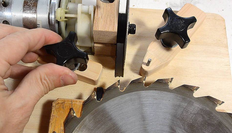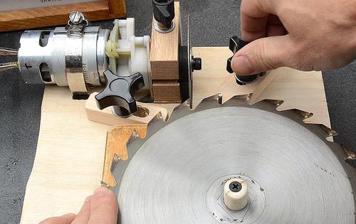 dowel for the blade to rotate on. This ensures the teeth will always approach