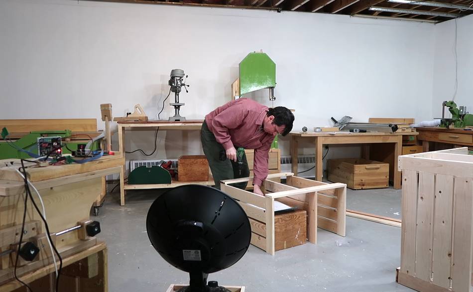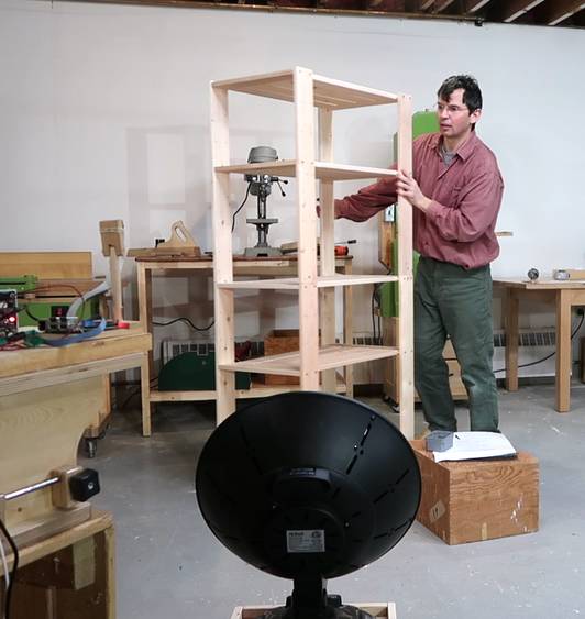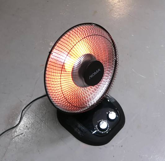 I'm not sure how useful this thing is. It would be more practical to just buy another infrared heater or two, because the cost of running this heater here is just ten cents per hour. But in my previous big garage workshop, maybe with a really directional heater, and a contraption that could also aim up and down, and to have several of these high up in the corners of the shop would have made a big difference in terms of not needing to heat the shop as much.