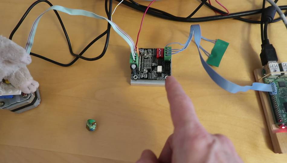 Then I realized about five years ago I bought this stepper driver, which I hadn't even taken out or the bag all this time. It turned out, that one was now discontinued and I couldn't even get documentation for it on line/ So i had to figure it out by trial and error. But it worked fine using the 3 volts from the raspberry Pi's I/O pins.