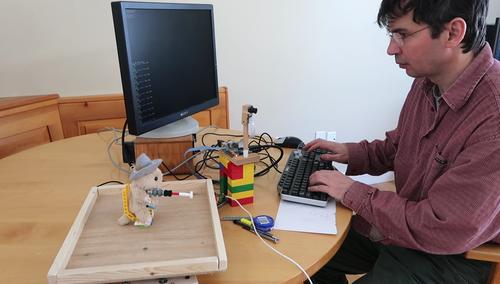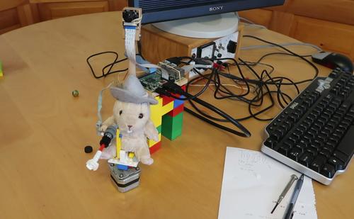 I added a little pointer to the motor, making a little "gun" for a little chipmunk toy to aim to debug and test my software.