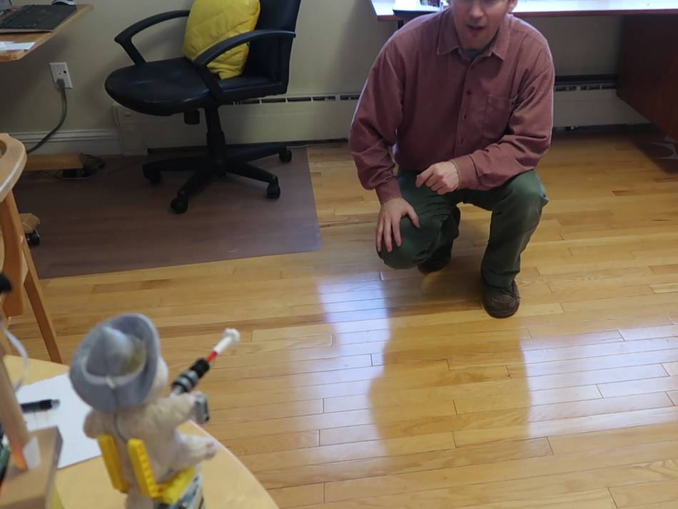 I raised the camera up a bit behind the chipmunk doll so it wouldn't trigger off the motion of the chipmunk itself.