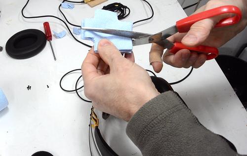 After that, I tried the headphones. Without checking which side I modified, I listened to the headphones, swapping left and right and seeing with side I liked more (as in, which side is less boomy). Consistently, the side I identified as sounding better was the one I had modified (the only way I could tell was by looking for where I cut away a bit of the varnish earlier). I swapped the plugs for left and right and repeated a few more times to rule out whether it was the music itself that was boomier on one side or the other. So I think these headphones could use some better damping material behind the speakers. I don't think the little black foam pad that they come with is enough. When I built my ukulele, it also had some boominess to it in certain notes, and some felt inside the body also cured that.