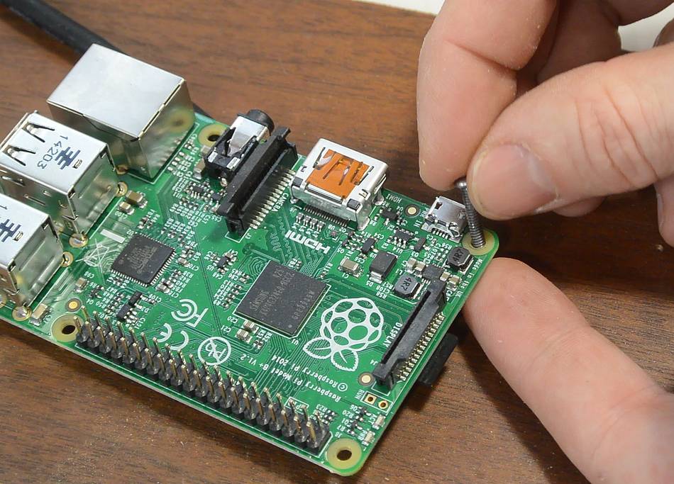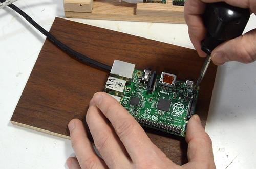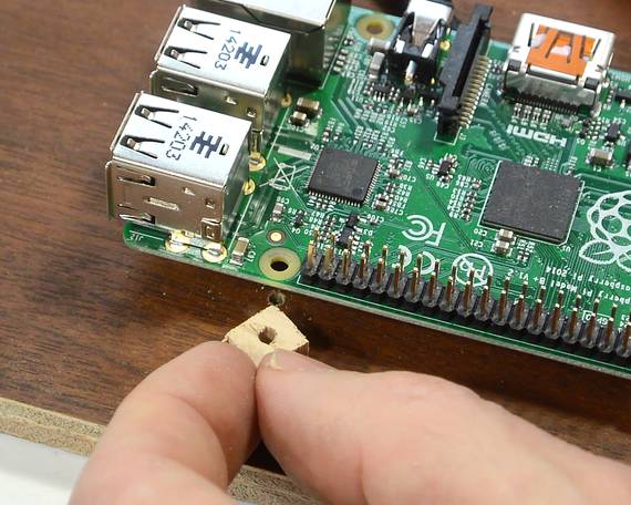 I didn't have any wood screws small enough for the holes in the Raspberry Pi,