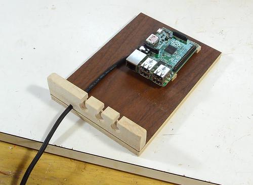 A problem with the Raspberry Pi, is that it's so much lighter than the cables that connect to it. It's all too easy to pull it off the table by accident.