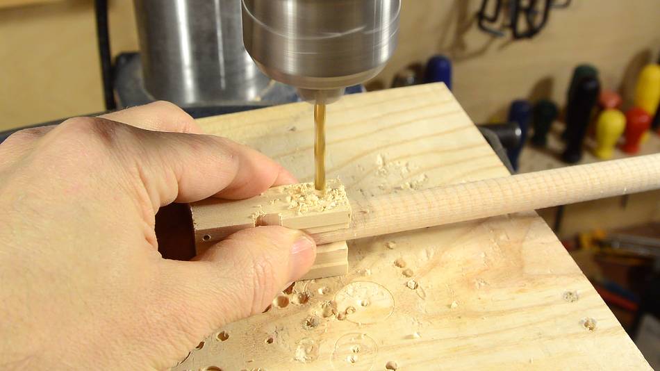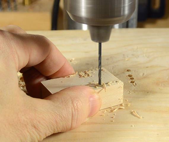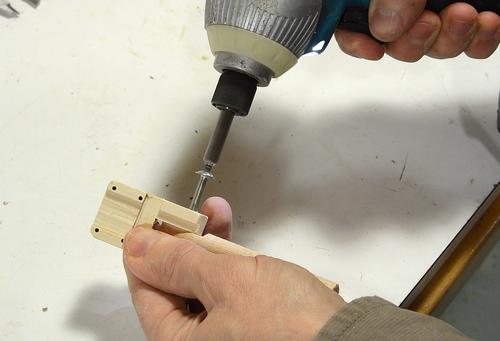 I cut a slot in the bottom of the block, and a dowel, flattened on two sides,