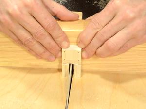fits in the slot. A hole drilled through both parts acts as a hinge pin.