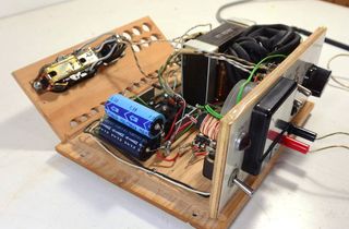 I made some wooden spacers to go under the board to allow for room for the components on the bottom and the cable.