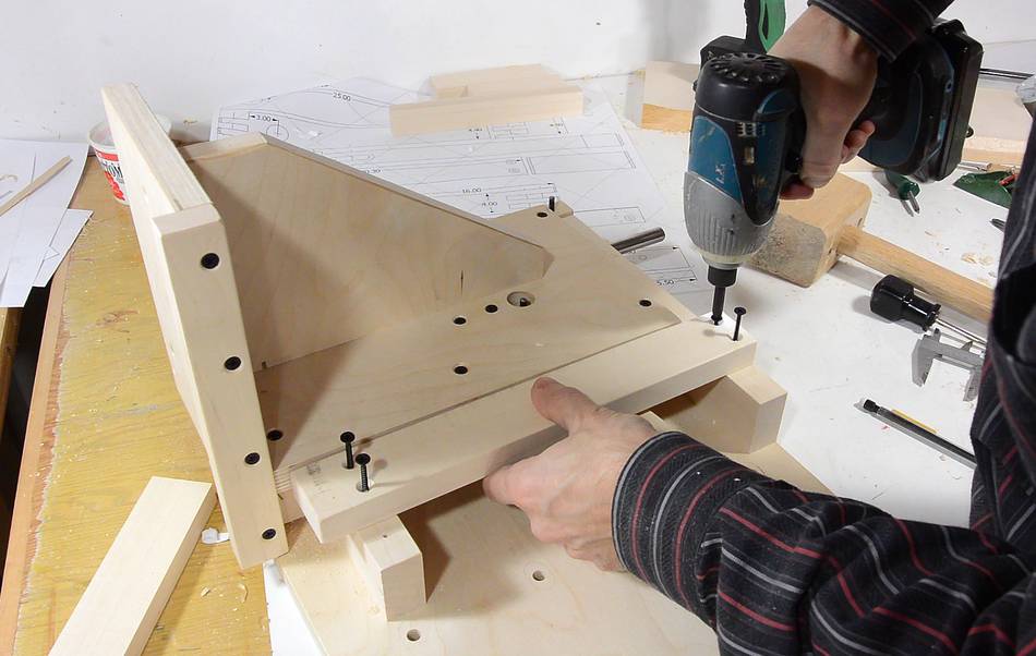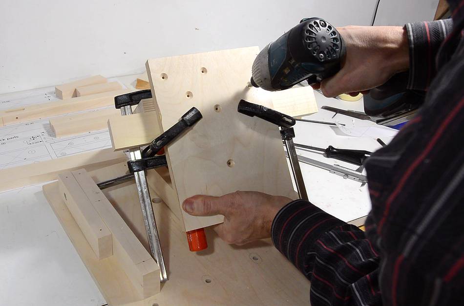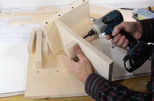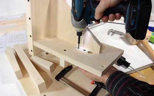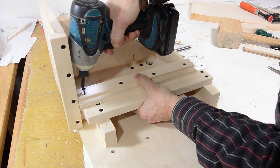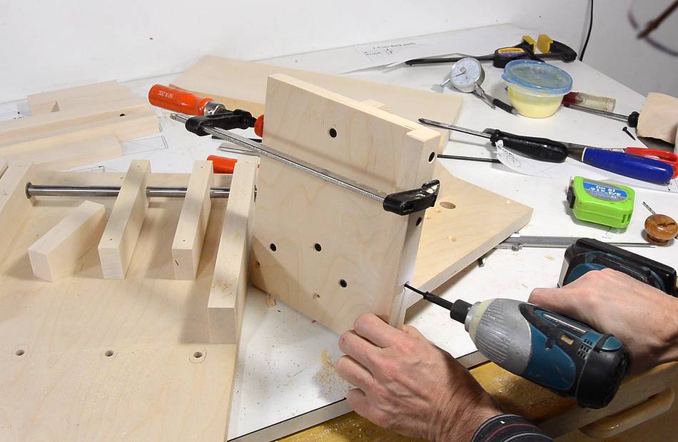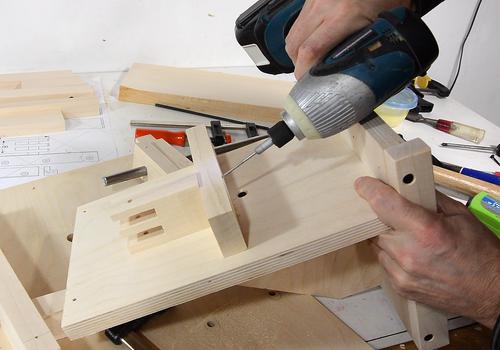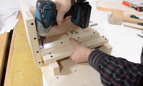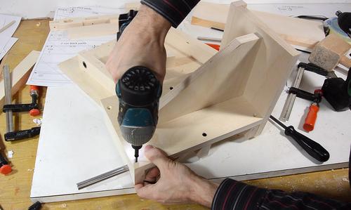 Screwing the other two blocks in place.
