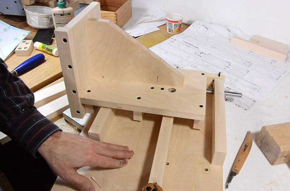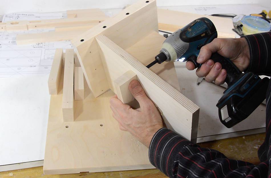 To keep it from tipping backwards, another block is screwed on the front.