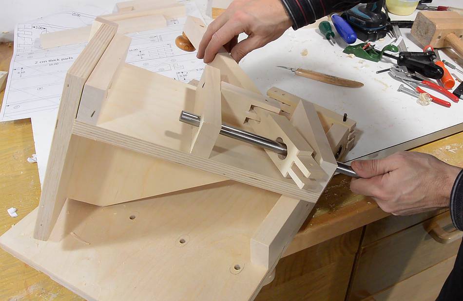 in place, and tapped the steel shaft through all the holes. I ground a