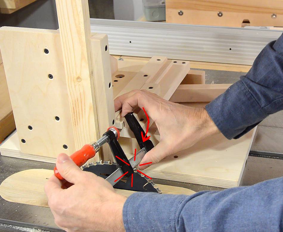 I like to use a quick-grip clamp for holding the stock. The fast one-handed operation makes these clamps ideal for the job.